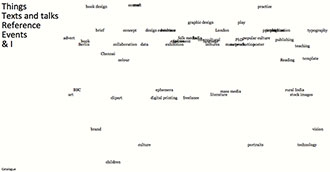 The positioning and overlap of the tags on the page is based on a precise grid. The tags are sorted vertically by how recently they have been used and horizontally by alphabet, to create a flexible evolving layout that shows the shape of my thought and process both current and past.